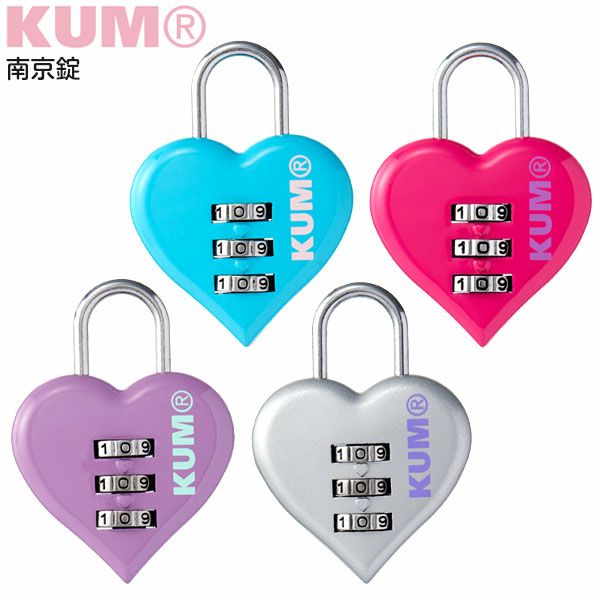 文房具 文具 新入学 入学 用品 入園 新学期 卒業 卒園 記念品 文具 文房具 学用品 筆記用具 新入学 入学準備 新学期 ギフト プレゼント お祝い クム 南京錠 鍵 ダイヤル式 ダイヤルロック スーツケース ロッカーハート型 かわいい 3桁 ブルー 4902562505695 KM1148A パープル 4902562505701 KM1148V ピンク 4902562505718 KM1148P シルバー 4902562505725 KM1148S