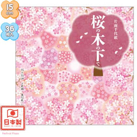 桜の木の下から見上げたイメージの千代紙。サクラのテトラボックス折り方付き。プリントは片面。