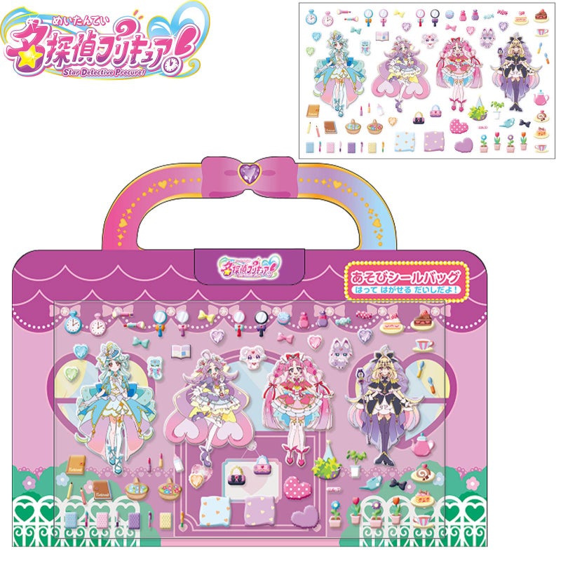プリキュアと楽しくごっこ遊び♪台紙に貼ってはがして遊べるシールの入った『名探偵プリキュア!』のあそびシールバッグです。