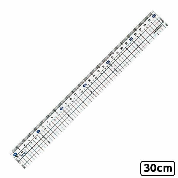 読み取りやすいポイントメモリ付左利きの方も使いやすい右端始まりの目盛りつき定規です。