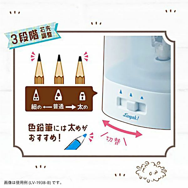 他の画像を見る 機能性・安全性も兼ね備えた、電動鉛筆削り器 ソニック SONIC ちょいケズ 電動 鉛筆削り 芯先調整付 乾電池・USB両対応 リビガク LV-1924-W LV-1924-B { 新入学文具 鉛筆削り器 小学生 小学校 }{ 文具 文房具 新入学 新学期 子供 プレゼント お祝い }423[25B03][dmo] メーカー希望小売価格 ¥ 1,980 のところ 当店特別価格 ¥ 1,485 税込 カートに入れる お気に入りに登録する