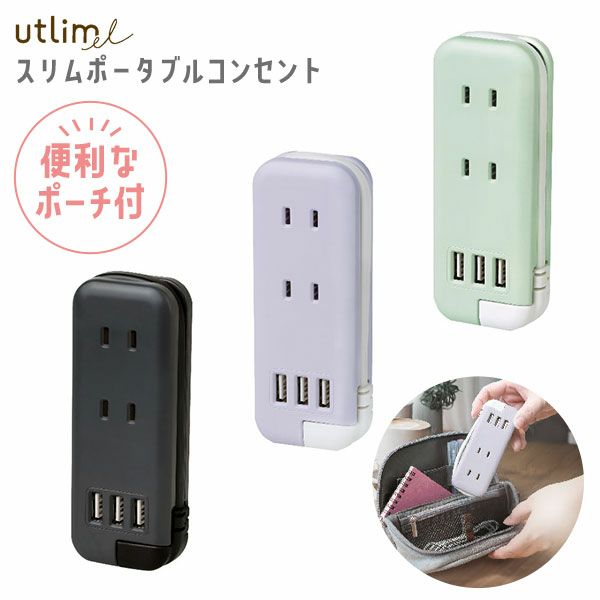 6. ソニック SONIC ユートリムエル スリムポータブルコンセント ポーチ付き USB-A×3 UL-6345 { 新入学文具 コンセント ポータブル 充電式 USB USB電源 屋外 卓上 おしゃれ }{ 新入学 新学期 文具 文房具 進級 入学祝い 進級祝い ギフト プレゼント お祝い }423[26B11]