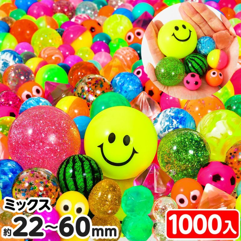 大小様々なサイズ、いろんな種類・形のスーパーボールが入っており、とにかくレパートリーが自慢のスーパーボール詰め合わせ!