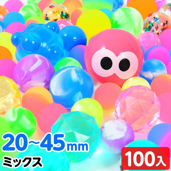 大小様々なサイズ、いろんな種類で揃えたスーパーボールが入っています。