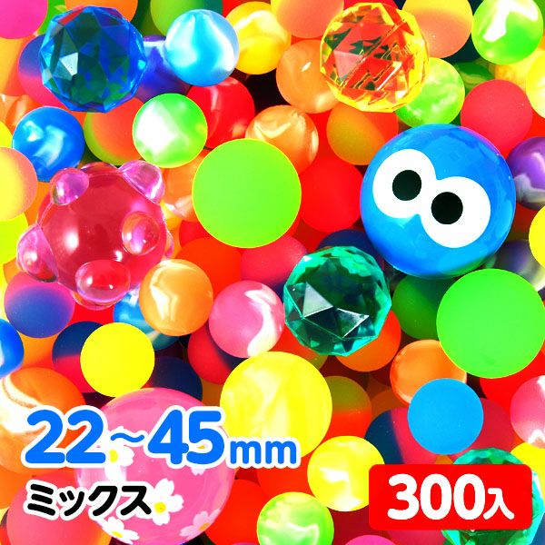 大小様々なサイズ、いろんな種類で揃えたスーパーボールが入っています。