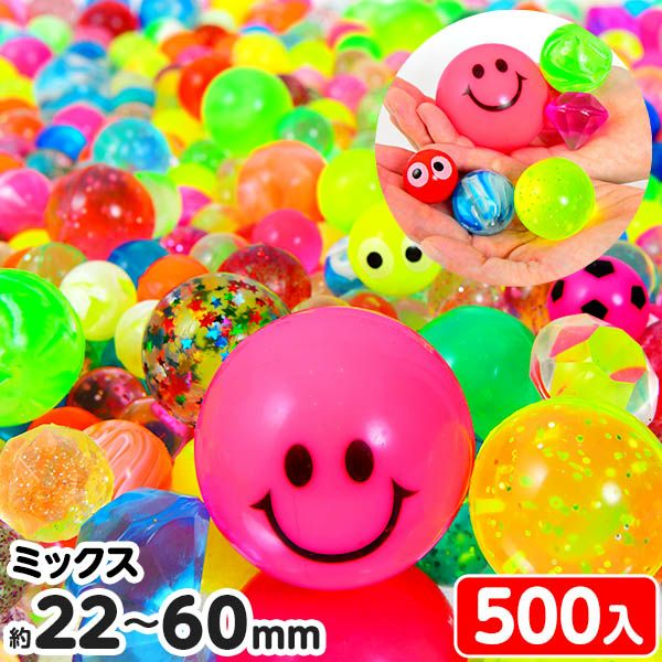 大小様々なサイズ、いろんな種類・形のスーパーボールが入っており、とにかくレパートリーが自慢のスーパーボール詰め合わせ!