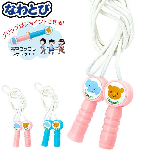 グリップが連結できるから、電車ごっこもラクラクできちゃう!かわいい動物柄のなわとびです。