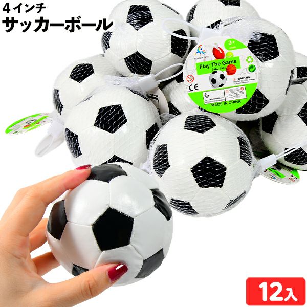 手の平サイズのサッカーボール約9.5cm。やわらかい素材のサッカーボールのおもちゃです。
