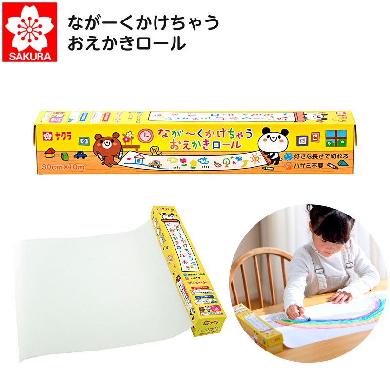 ハサミ不要!好きな長さで切って使える長く引き出し、好きなだけおえかきができるロール紙です。