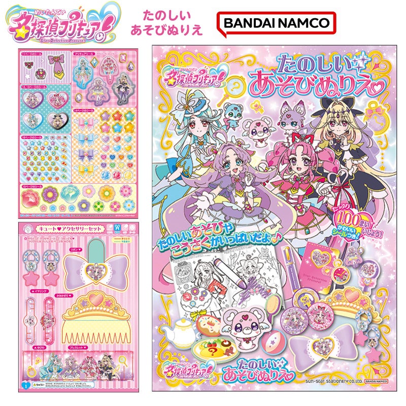 工作・シールあそびなどたっぷりあそべる!『名探偵プリキュア!』のかわいいシールなどがついたぬりえです。