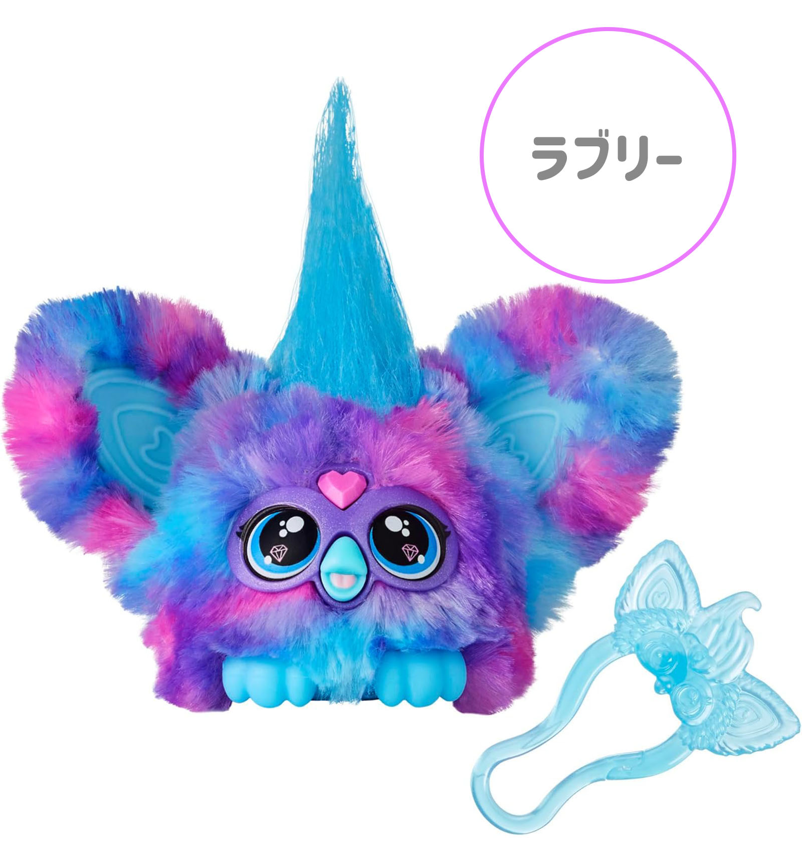 レインボーカラーが特徴でエレクトロニカが大好き!口やハートボタンを押したり、頭をポンってすると、ファービー語でおしゃべりしたり、歌ってくれるよ♪