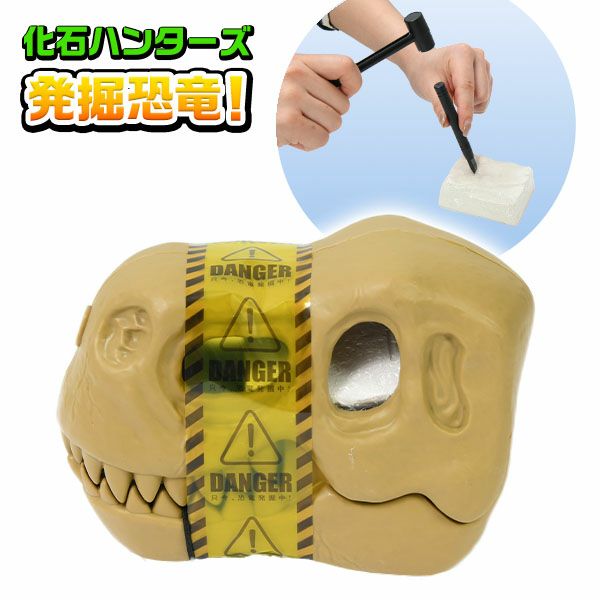 付属のツールで削って、化石発掘!恐竜の頭型のケースが可愛い、発掘体験おもちゃです。
