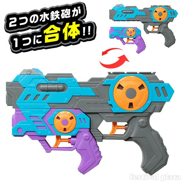 2つの水鉄砲が1つに合体!ダブルアクションで狙い撃ち!!