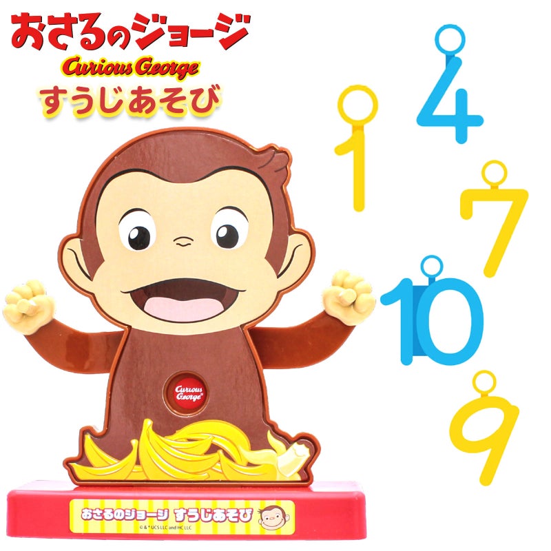 ジョージの腕に数字をぶらさげて大小を学ぼう!大きい数字の腕が下がる楽しい仕組み。形とサイズで感覚的に学べる人気キャラクターのおもちゃ。誕生日プレゼントやお祝いのギフト、イベント景品に最適です。