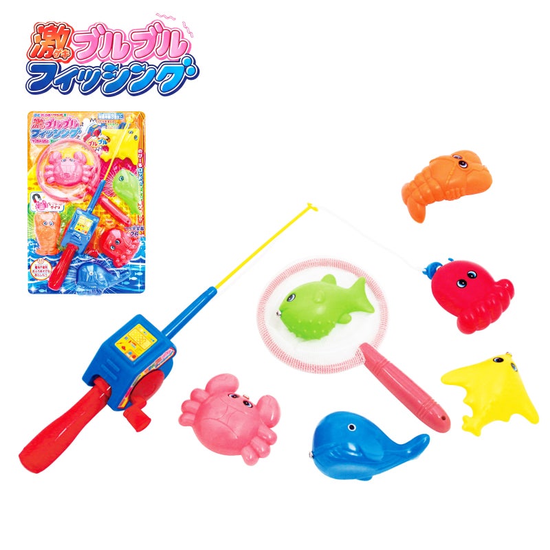 リールをまくと竿がブルブル震えて、まるで本物の魚を釣った時のような感覚が味わえる人気玩具です。夏祭りや縁日の景品、くじ引き、イベント、誕生日プレゼントやお祝いなど、幅広いシーンで喜ばれるアイテムです。