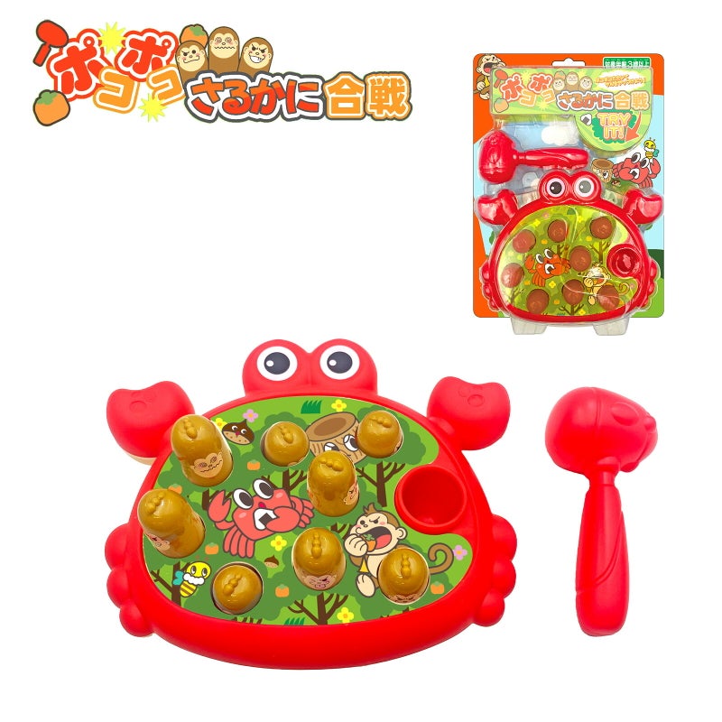 大きなカニの入れ物に隠れたサルをハンマーでポコポコ叩いてやっつける人気玩具。楽しいゲームが遊べるおもちゃです。夏祭りや縁日の景品、くじ引き、イベント、誕生日プレゼントやお祝いなど、幅広いシーンで喜ばれるアイテムです。