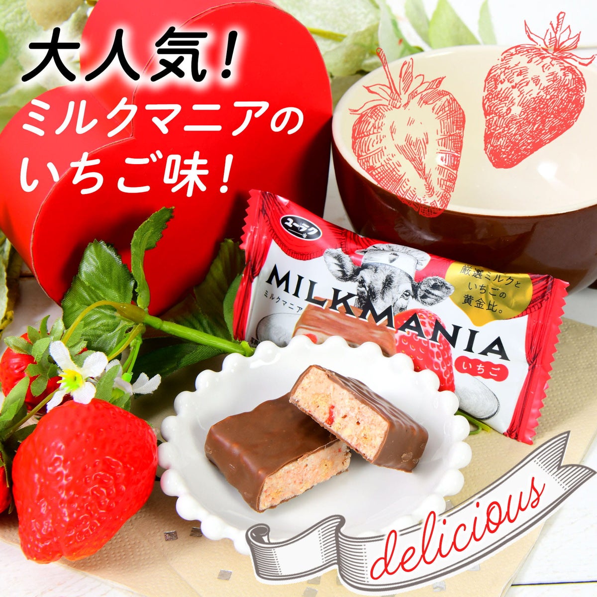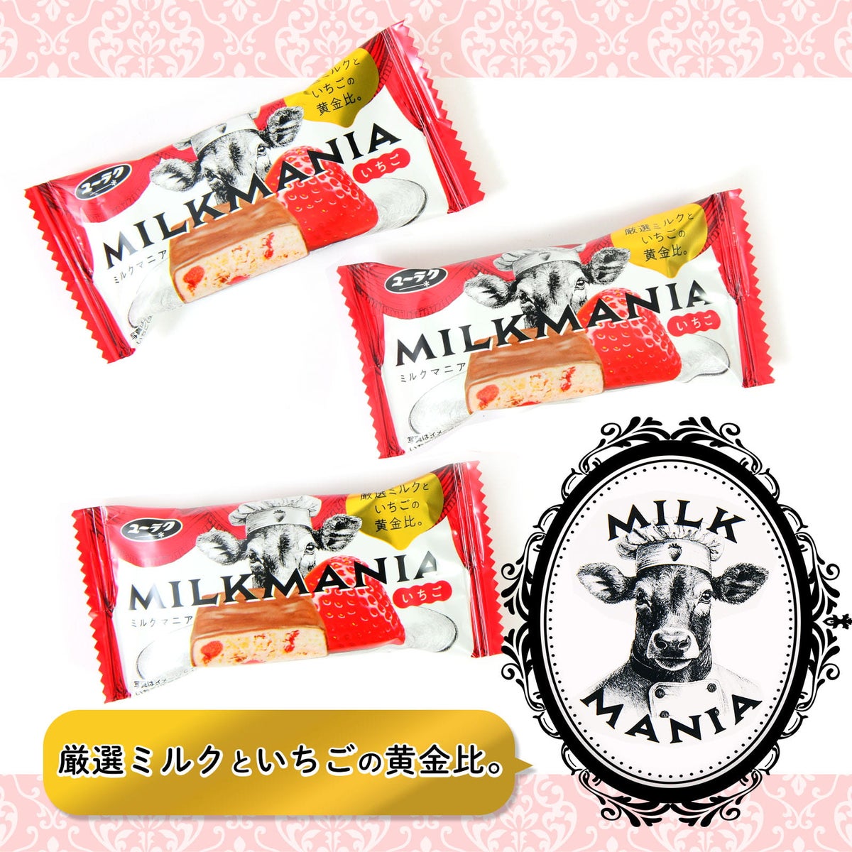 { 駄菓子 お菓子 イチゴ 苺 チョコ チョコレート milkmania }{ おかし おやつ 景品 縁日 問屋 子供 子供会 詰め合わせ 大量 パーティー イベント 配布 }[26C30][dmo]