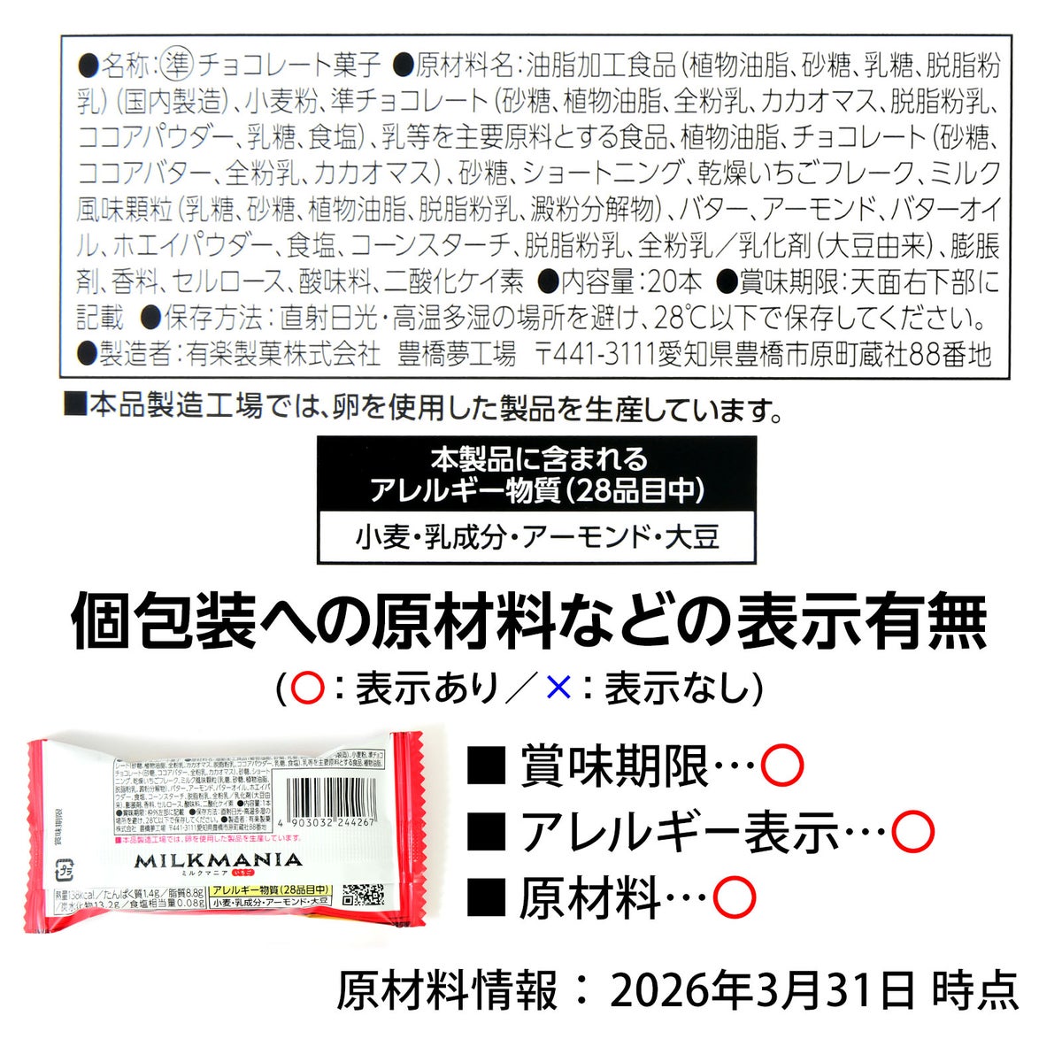 有楽製菓 ユーラク ミルクマニア いちご 20個装入