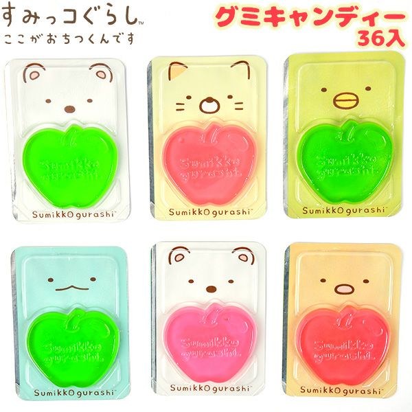 すみっコ好きにはたまらないっ!!食べるのがもったいないくらいのかわいいパッケージ♪赤リンゴと青りんご風のグミキャンディだよ☆