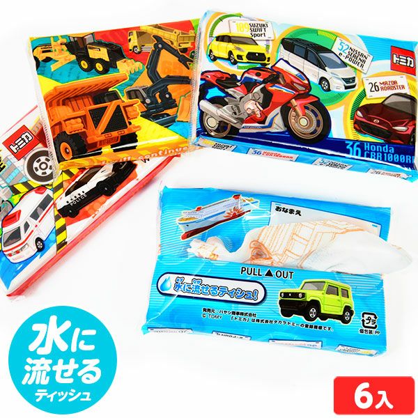 水に流せるソフトでやさしいティシュートミカのポケットティッシュ6パックセットです。