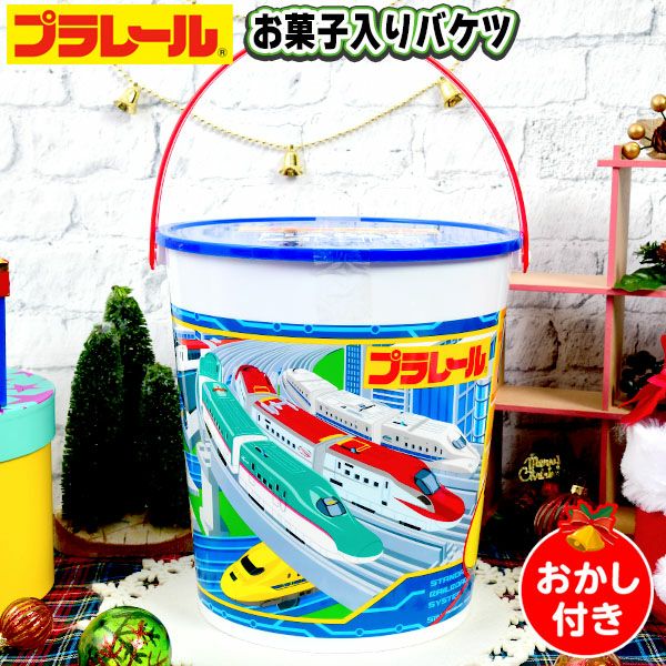 お子さまへのクリスマスプレゼントに最適♪プラレールデザイン、おもちゃのお片付けにぴったりのバケツです。