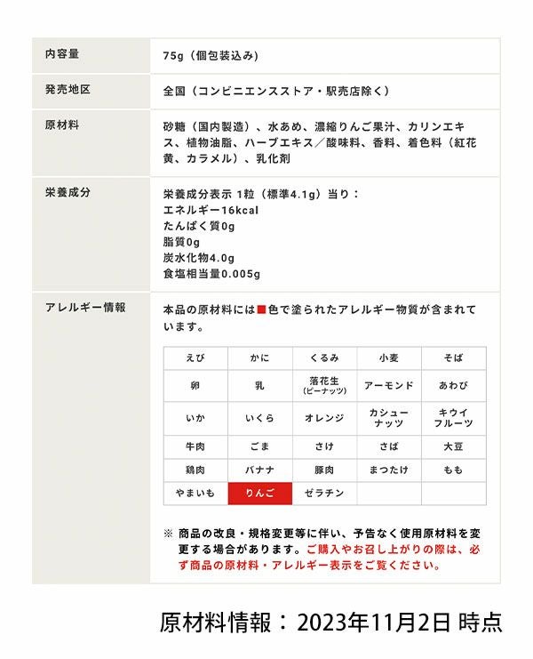 他の画像を見る 1個装あたり約11.2円(約12.1円税込)x約18個装入=202円(218円税込)冬の季節に☆国産カリンエキス使用のどあめ ロッテ ポケモン りんご のど飴 袋 75g(約18個装入) { 駄菓子 お菓子 ポケットモンスター あめ 飴 キャンディ }{ 駄菓子 お菓子 おかし おやつ 景品 お祭り 縁日 問屋 子供 子供会 自治会 お子様ランチ 詰め合わせ 大量 まとめ買い パーティー イベント 配布 }[23K02] メーカー希望小売価格 オープン価格 のところ 当店特別価格 ¥ 218 税込 カートに入れる お気に入りに登録する