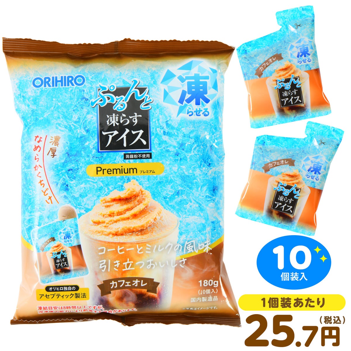 他の画像を見る 1個装あたり23.8円(25.7円税込)x10個装入=238円(257円税込)期間限定! コーヒーとミルクの風味が引き立つおいしさ♪ オリヒロ ぷるんと凍らすアイス プレミアムカフェ カフェオレ 10個装入 { 駄菓子 お菓子 期間限定 冷凍 アイス 蒟蒻 ゼリー コーヒー }{ おかし おやつ 景品 お祭り 夏祭り 縁日 問屋 子供 子供会 自治会 詰め合わせ 大量 イベント 配布 個装 }[26C26][dmo] メーカー希望小売価格 ¥ 302 のところ 当店特別価格 ¥ 257 税込 カートに入れる お気に入りに登録する