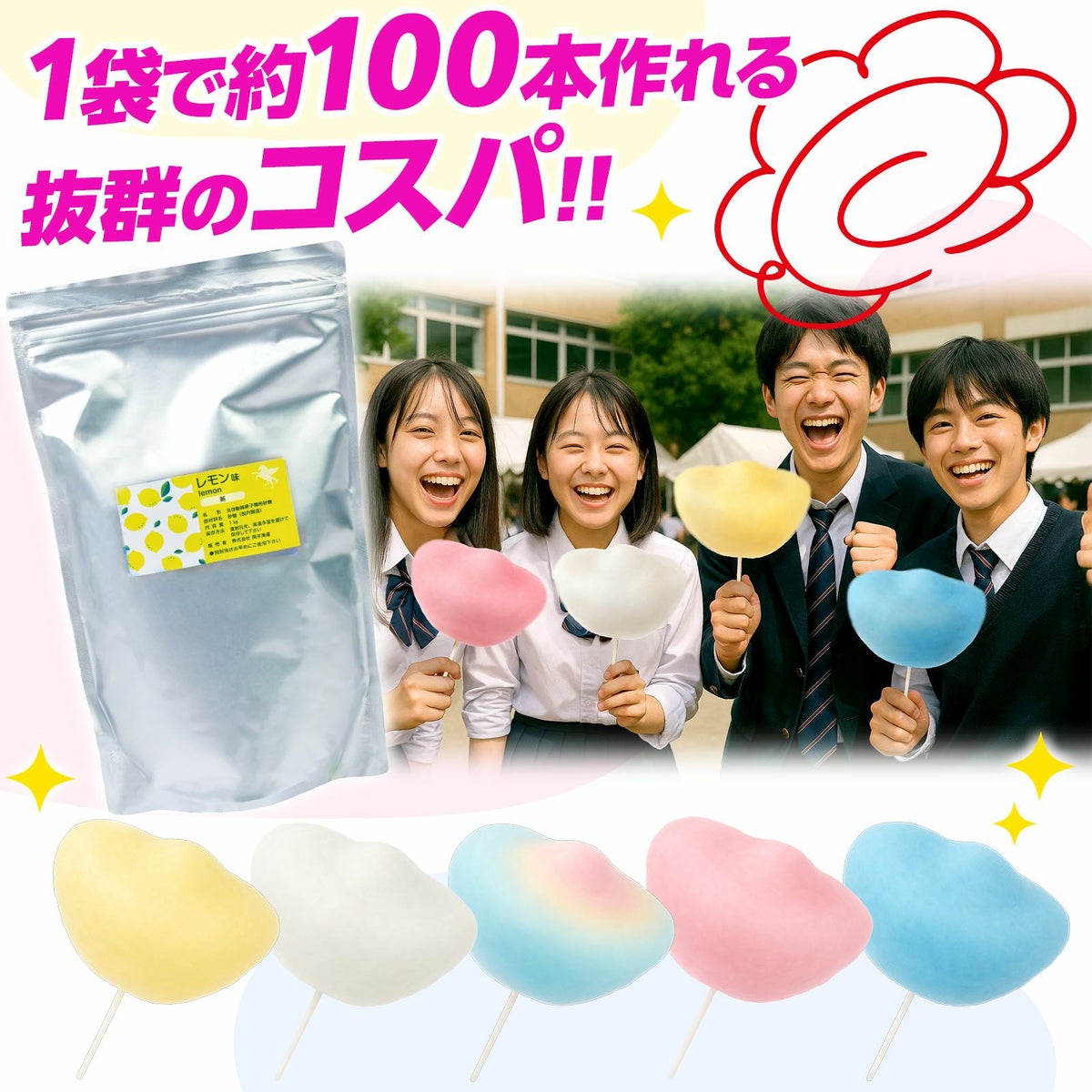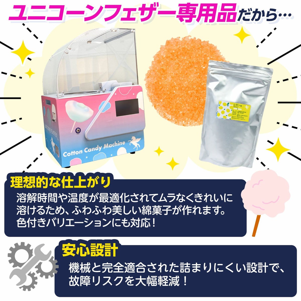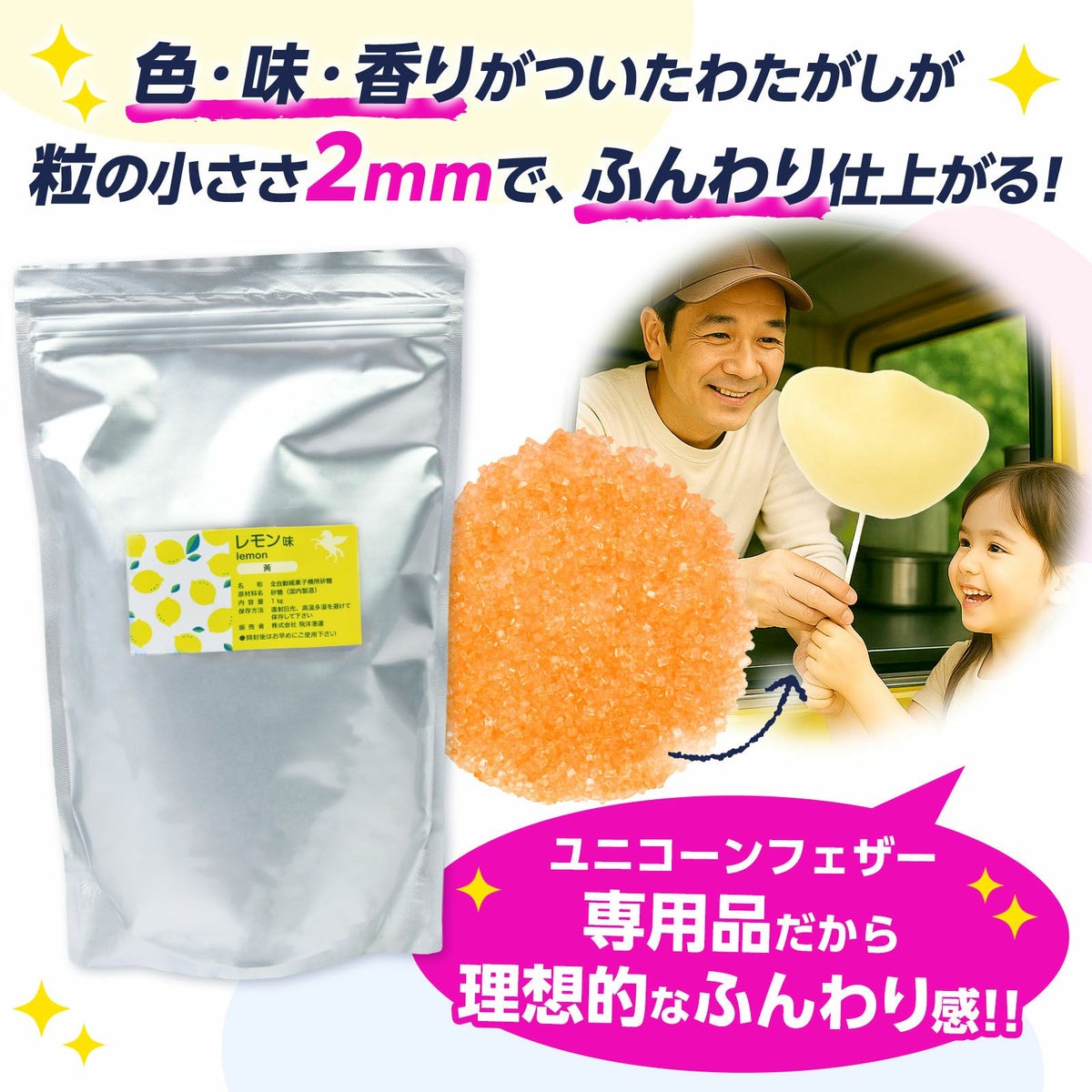他の画像を見る 話題沸騰!レインボーわたあめが作れるザラメ 【ユニコーンフェザー 綿菓子機 対応】 ザラメ レモン 黄 10kg { 業務用 わたあめ 綿菓子 綿あめ ざらめ ザラメ 砂糖 レインボー 綿アメ 材料 色付け }{ お祭り 縁日 屋台 イベント パーティー ホテル 遊園地 レジャー施設 }[25H07][dmo] メーカー希望小売価格 オープン価格 のところ 当店特別価格 ¥ 19,440 税込 在庫切れ 再入荷お知らせ お気に入りに登録する