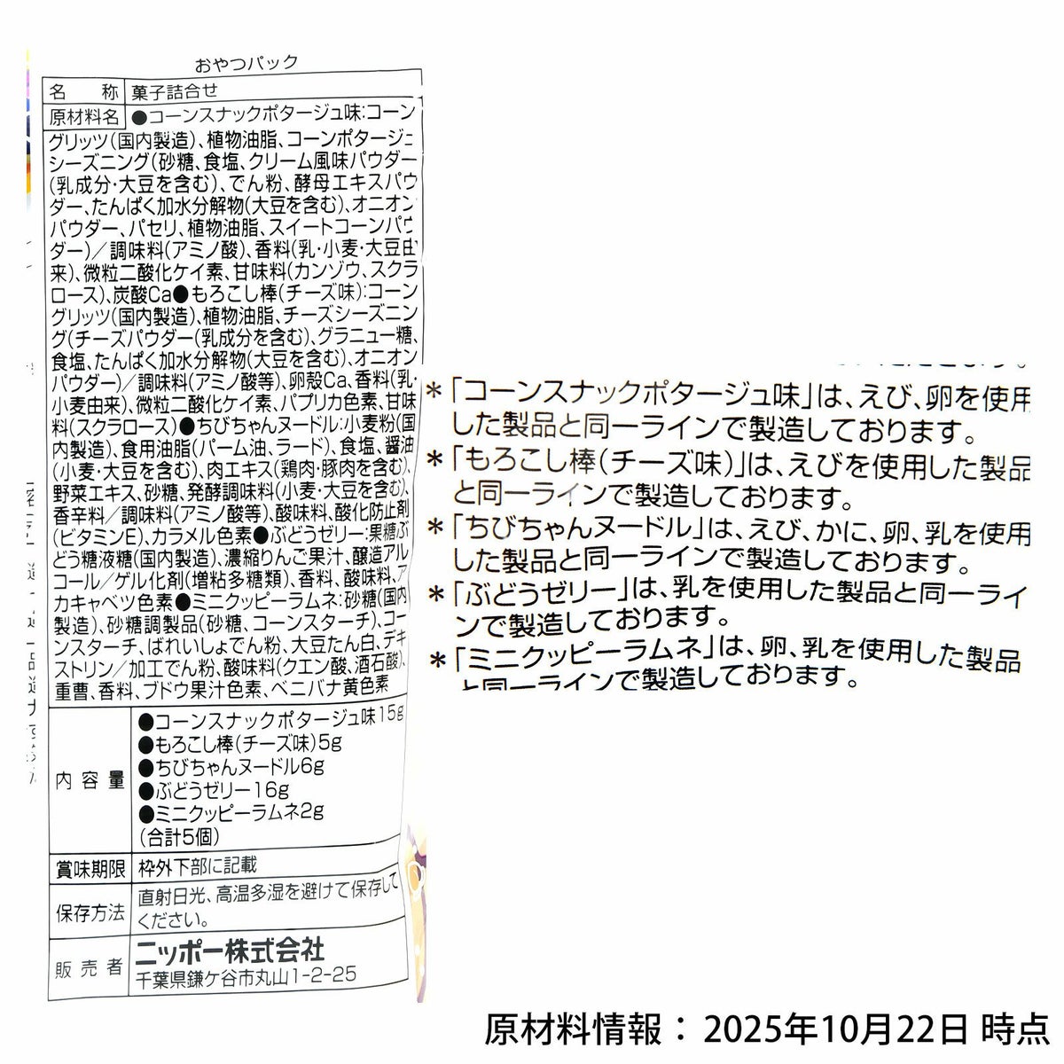 他の画像を見る 1個あたり約115.8円(125円税込)x20個入=2315円(2500円税込)『配るだけ!』で、便利!詰め合わせ菓子 おやつパック 20個入 { 駄菓子 お菓子 詰め合わせ つめあわせ 小学生 }{ おかし おやつ 景品 子供 子供会 夏祭り お祭り 縁日 くじ ビンゴ 販促 配布 問屋 イベント パーティー }[25K11][dmo]{即日出荷 配送区分D} メーカー希望小売価格 ¥ 3,240 のところ 当店特別価格 ¥ 2,500 税込 カートに入れる お気に入りに登録する