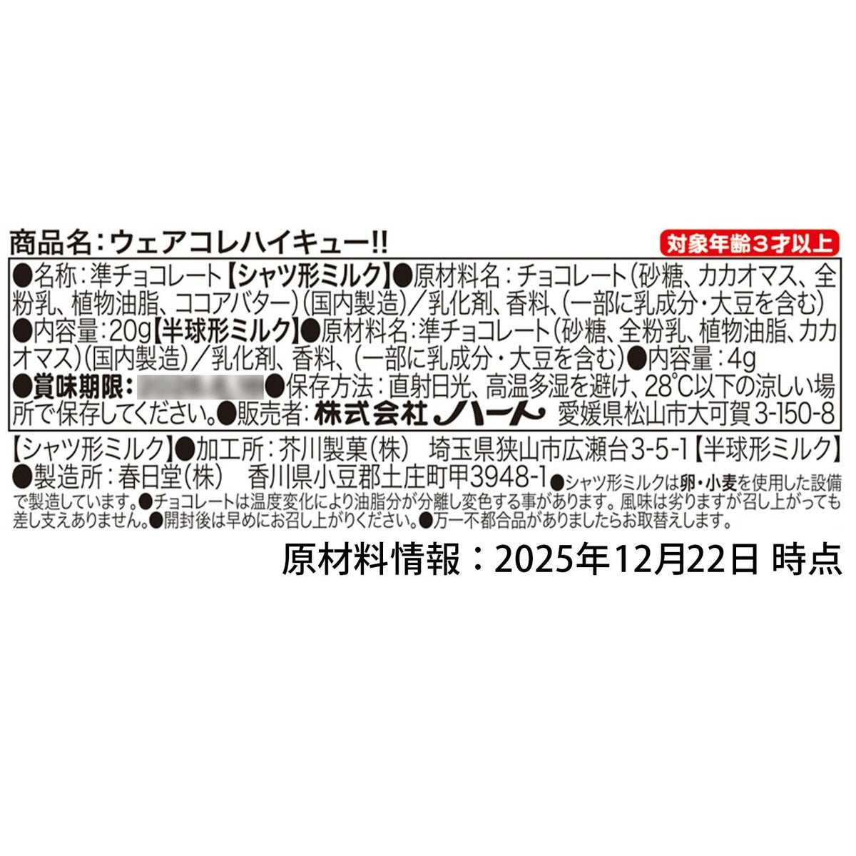 他の画像を見る 【送料無料 ポスト投函】(※必ず注意文をお読み下さい。)2026年新作バレンタインチョコ ハート 【4種セット】 ウェアコレ ハイキュー!! 4個装入 【送料無料 ポスト投函】{ 駄菓子 お菓子 }{ おかし バレンタイン チョコ チョコレート 2026 バレンタインチョコ キャラクター ギフト プレゼント 友チョコ 推しチョコ }[26B07][dmo]{即日出荷 配送区分N} メーカー希望小売価格 ¥ 2,808 のところ 当店特別価格 ¥ 2,480 税込 詳細を見る お気に入りに登録する