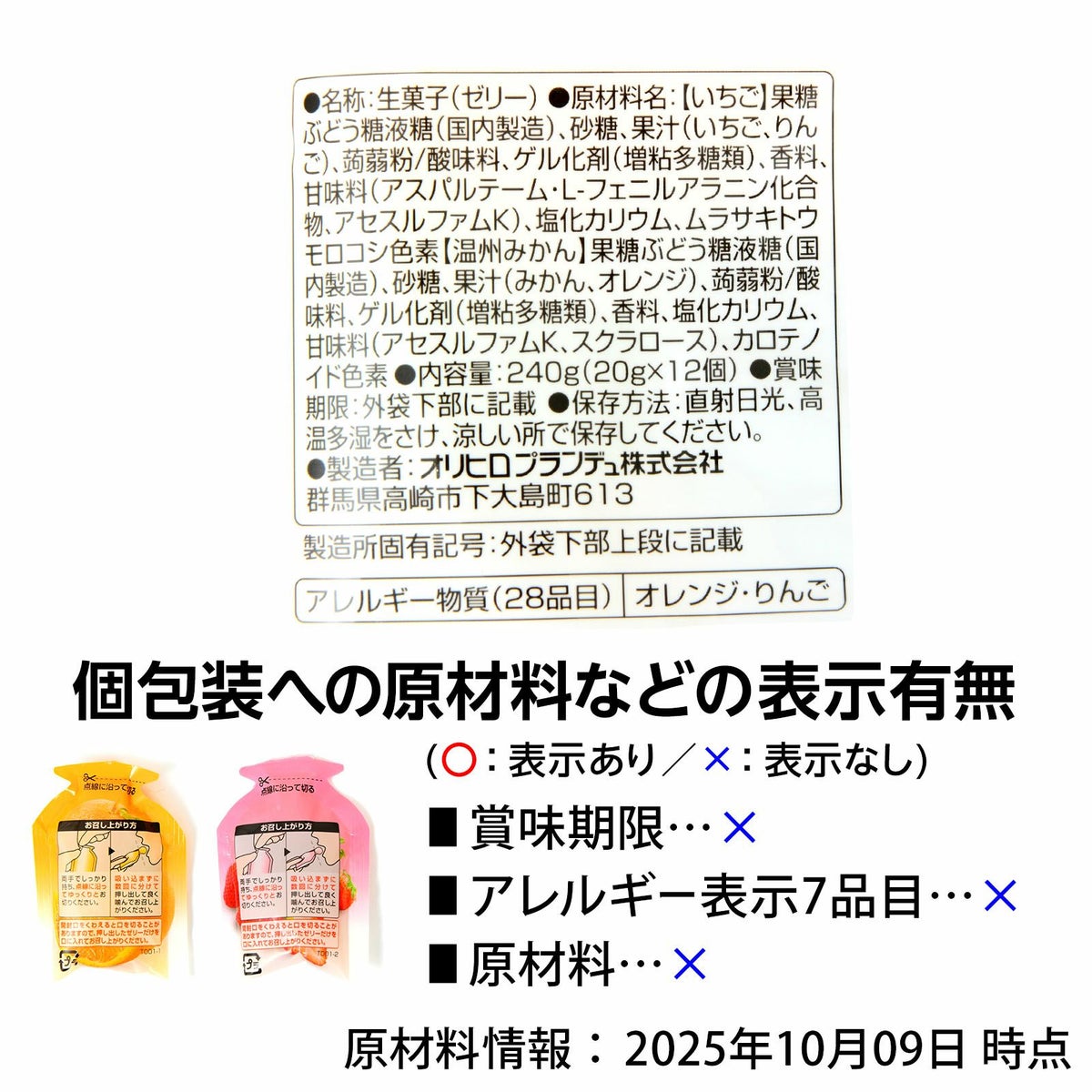 他の画像を見る 1個装あたり約18.8円(約20.3円税込)x12個装入=225円(243円税込)期間限定!しっかり果汁感☆やみつき食感! オリヒロ ぷるんと蒟蒻ゼリー いちご+温州みかん 12個装入 { 駄菓子 お菓子 期間限定 ゼリー 蒟蒻ゼリー お弁当 遠足 スポーツ }{ おかし おやつ 景品 お祭り 夏祭り 縁日 問屋 子供 子供会 自治会 詰め合わせ 大量 イベント 配布 個装 }[25I24][dmo] メーカー希望小売価格 オープン価格 のところ 当店特別価格 ¥ 243 税込 カートに入れる お気に入りに登録する
