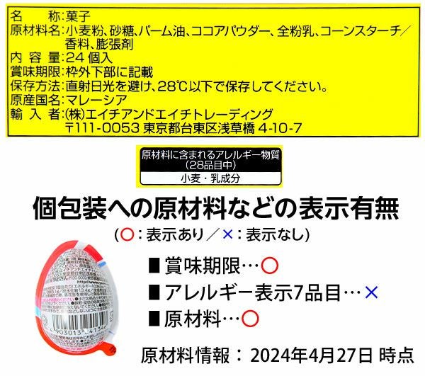 他の画像を見る 単価102円(約110.2円税込)x24個装入=2448円(2644円税込)キッズに人気!レーシングカーのおもちゃ入りチョコ レーシング トイズエッグ 24個装入 { 駄菓子 お菓子 チョコ チョコレート レース スポーツカー くるま 車 男の子 }{ 駄菓子 お菓子 おかし おやつ 景品 お祭り 縁日 問屋 子供 子供会 お子様ランチ 詰め合わせ 大量 保育園 幼稚園 パーティー イベント 配布 }[24C13] メーカー希望小売価格 ¥ 3,110 のところ 当店特別価格 ¥ 2,644 税込 詳細を見る お気に入りに登録する