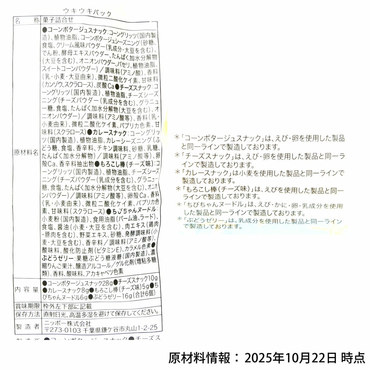 他の画像を見る 『配るだけ!』で、便利!詰め合わせ菓子 ウキウキパック { 駄菓子 お菓子 詰め合わせ つめあわせ 学童 }{ おかし おやつ 景品 子供 子供会 夏祭り お祭り 縁日 くじ ビンゴ 販促 配布 問屋 イベント パーティー }[25K17][dmo]{即日出荷 配送区分D} メーカー希望小売価格 ¥ 308 のところ 当店特別価格 ¥ 248 税込 在庫切れ 再入荷お知らせ お気に入りに登録する