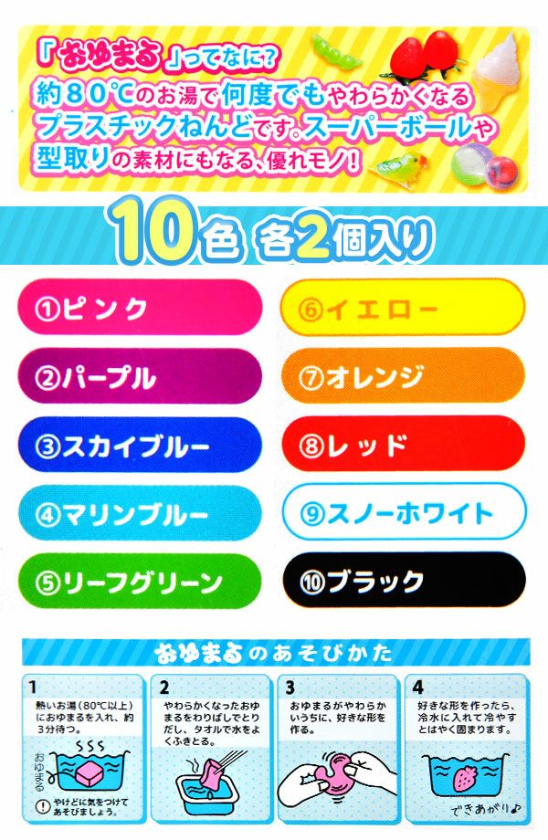 他の画像を見る 約80℃のお湯で何度でもやわらかくなるプラスチックねんど ヒノデワシ おゆまる (10色・20個入) { 新入学文具 ねんど お湯 工作 製作 スイーツ デコ 型取り DIY 年度 }{ 新入学 文具 文房具 子供 入学 入学準備 小学生 ギフト プレゼント 記念 卒園 }424[23L09] メーカー希望小売価格 ¥ 1,100 のところ 当店特別価格 ¥ 825 税込 カートに入れる お気に入りに登録する