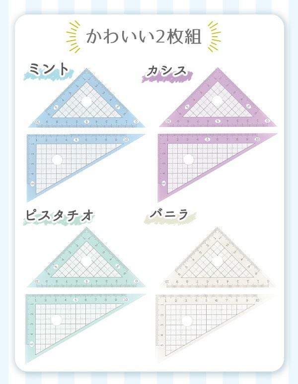 他の画像を見る パステルカラーがオシャレでかわいい♪ マカロン ルーラー 三角定規 2枚組 { 新入学文具 定規 三角定規 算数 小学生 小学校 中学生 かわいい おしゃれ オシャレ シンプル }{ 文具 文房具 学用品 筆記用具 新入学 入学準備 新学期 ギフト プレゼント お祝い }421[23L06] メーカー希望小売価格 ¥ 275 のところ 当店特別価格 ¥ 207 税込 カートに入れる お気に入りに登録する