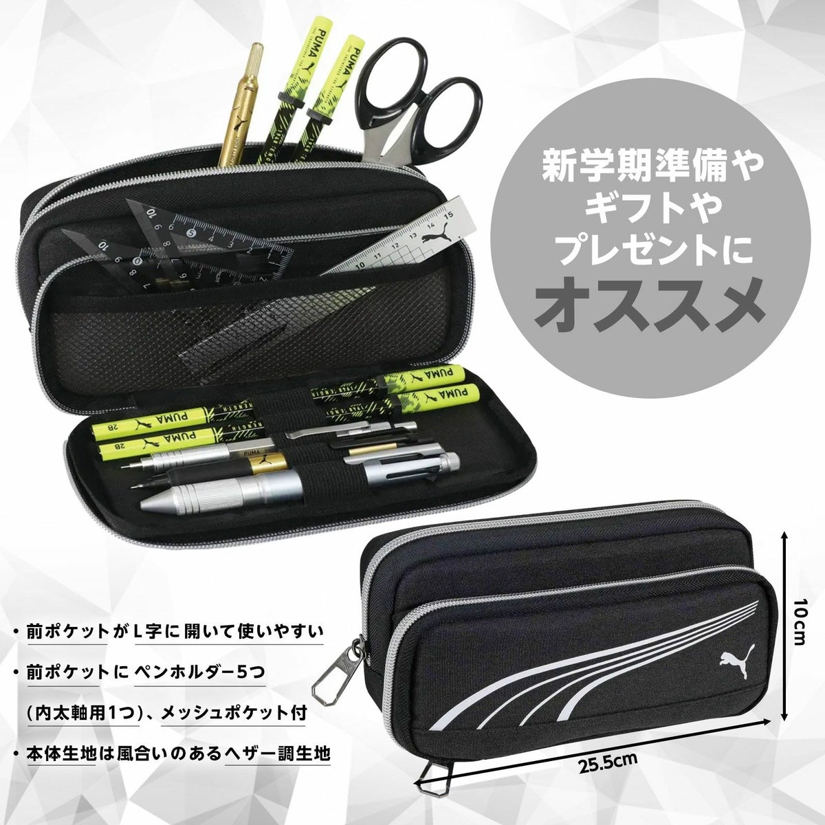 他の画像を見る 2025年夏の新作文具!新学期準備・新入学準備にも! PUMA ヘザーダブル ペンケース PM568 クツワ { 新入学文具 プーマ 筆箱 筆入れ 男の子 女の子 スポーツブランド }{ 文具 文房具 筆記用具 新入学 小学生 中学生 高校生 入学 新学期 ギフト プレゼント }400[25H05] メーカー希望小売価格 ¥ 1,980 のところ 当店特別価格 ¥ 1,485 税込 カートに入れる お気に入りに登録する
