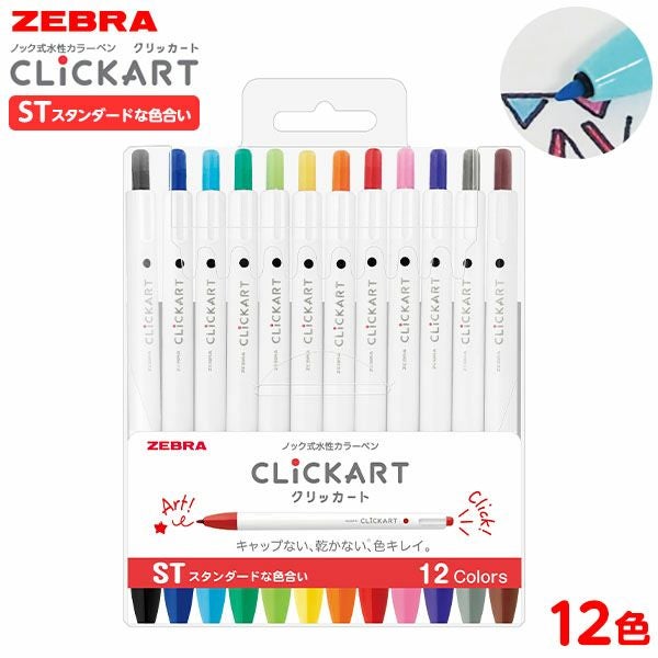 他の画像を見る キャップなしでもペン先が乾かず描けるノック式水性カラーペン ゼブラ クリッカート ノック式水性カラーペン スタンダード 12色セット WYSS22-12CST { 新入学文具 新入学文具 DK 人気 ペンセット }{ 新入学 文具 文房具 子供 入学 入学準備 小学生 ギフト プレゼント 記念 卒園 室内遊び }434[26B11] メーカー希望小売価格 ¥ 1,584 のところ 当店特別価格 ¥ 1,188 税込 カートに入れる お気に入りに登録する