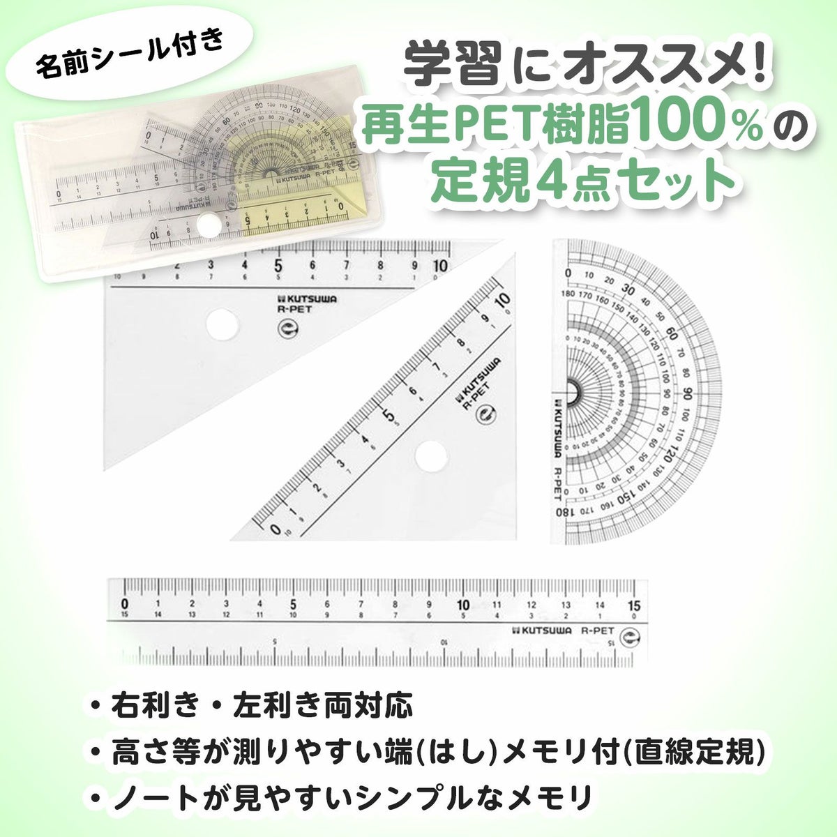 他の画像を見る 【2026年新作文具】 新学期準備に!算数授業に大活躍 クツワ 再生PET 定規セット AP035 { 新入学文具 定規 三角定規 分度器 定規セット 算数 小学生 }{ 文具 文房具 新入学 準備 }400[25J24] メーカー希望小売価格 ¥ 418 のところ 当店特別価格 ¥ 293 税込 カートに入れる お気に入りに登録する