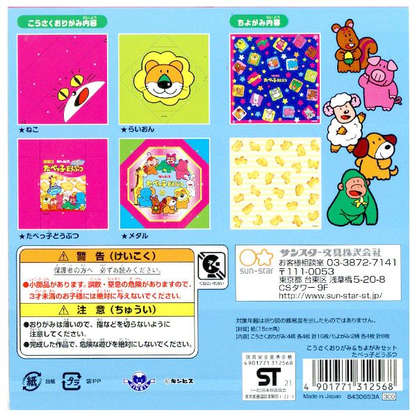 他の画像を見る たべっ子どうぶつキャラクターをおりがみで作っちゃおう! サンスター たべっ子どうぶつ こうさくおりがみ&ちよがみセット 8430653A{新入学文具 おりがみ 折り紙 折紙 ちよがみ 千代紙 工作 どうぶつ アニマル 動物} {文具 文房具 知育 ギフト プレゼント お祝い} 410[22A05] メーカー希望小売価格 ¥ 330 のところ 当店特別価格 ¥ 248 税込 在庫切れ 再入荷お知らせ お気に入りに登録する