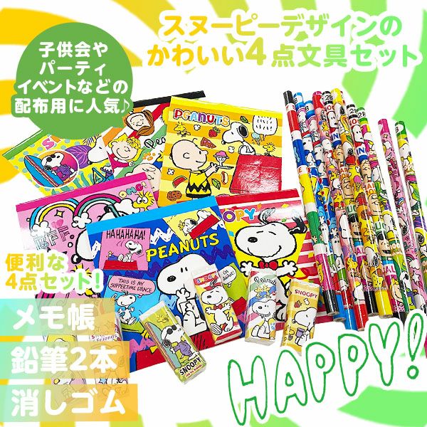 他の画像を見る 単価52円(57.2円税込)x25個入=1300円(1430円税込)プチギフトや景品用に人気! スヌーピー カラフル 4点文具セット 25個入 { 景品玩具 鉛筆 ノート 消しゴム プチギフト }{ 景品 おもちゃ 玩具 子供 子供会 お祭り くじ引き 縁日 お子様ランチ 幼稚園 保育園 夏祭り パーティー イベント プレゼント 配布 販促 }258[24E15] メーカー希望小売価格 オープン価格 のところ 当店特別価格 ¥ 1,430 税込 カートに入れる お気に入りに登録する