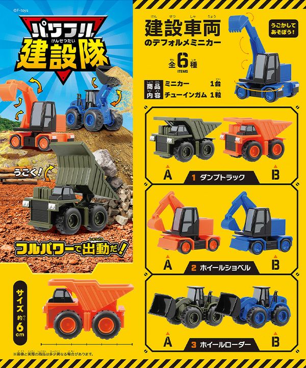他の画像を見る 7割引!!単価120円(132円税込)x10個装入=1200円(1320円税込)車両の一部が動く!パワフルなはたらくくるま エフトイズ パワフル建設隊 10個装入 バージョン指定不可{ 駄菓子 お菓子 建設車 はたらくくるま 車 男の子 }{ おもちゃ 食玩 コレクション 人気 アニメ キャラクター グッズ プレゼント }[25I19][dmo] メーカー希望小売価格 ¥ 4,400 のところ 当店特別価格 ¥ 1,320 税込 カートに入れる お気に入りに登録する