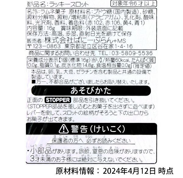他の画像を見る 単価360円(396円税込)x12個入=4320円(4752円税込)お得な12個セット!動かして遊べる☆おもちゃとしても遊べるこども菓子 ばにーぷらん ラッキースロット 12個入 { 駄菓子 お菓子 スロット ゲーム ラムネ菓子 動く おもちゃ 人気 幼児 男の子 女の子 食玩 }{ お菓子 おかし おやつ 景品 お祭り 縁日 問屋 子供 子供会 大量 まとめ買い 保育園 幼稚園 パーティー イベント }144[24D10] メーカー希望小売価格 ¥ 6,336 のところ 当店特別価格 ¥ 4,752 税込 在庫切れ 再入荷お知らせ お気に入りに登録する