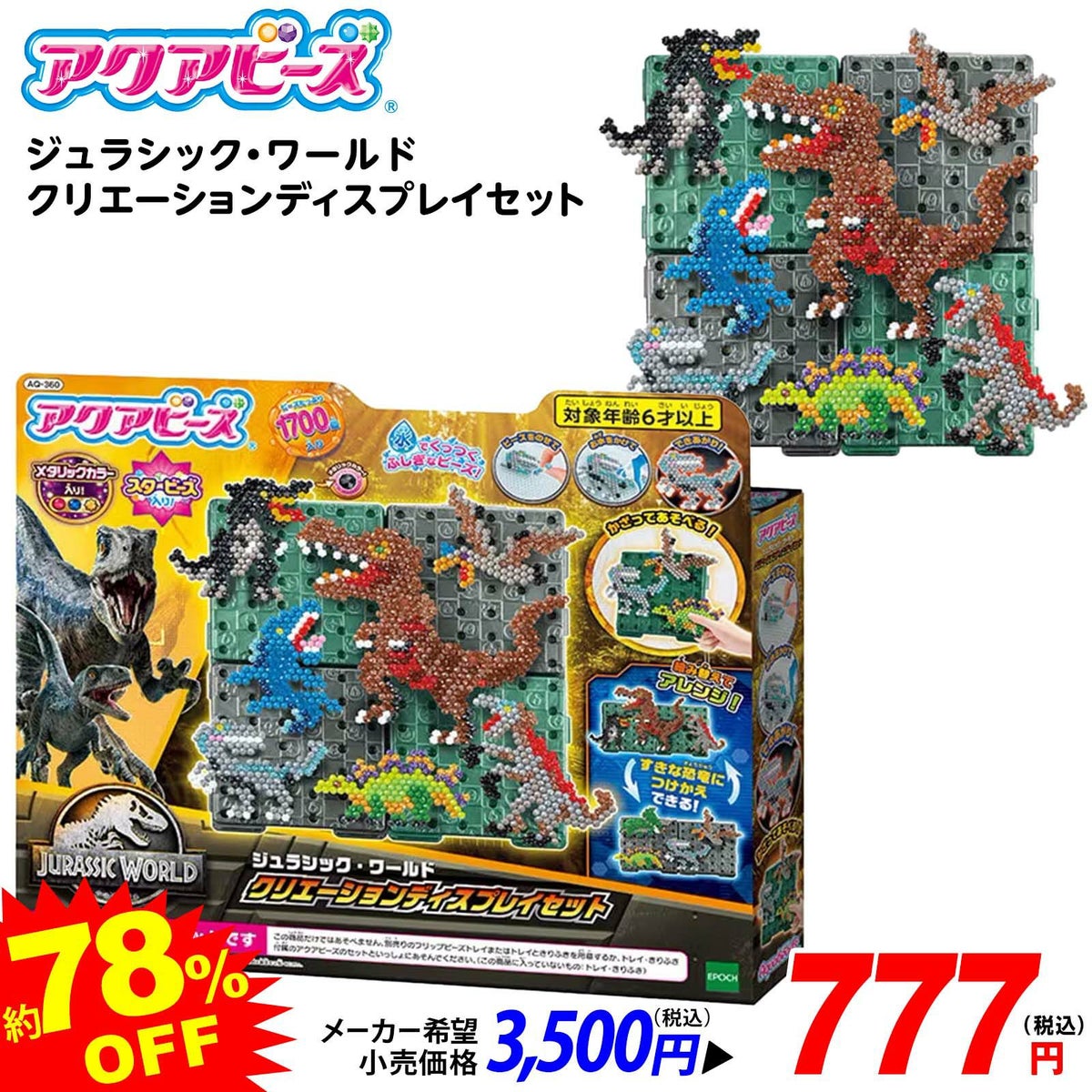 他の画像を見る 約8割引!!(約78%OFF!!)アクアビーズで恐竜を作ろう! エポック社 アクアビーズ ジュラシック・ワールド クリエーションディスプレイセット { 特価玩具 メイキングトイ ビーズ 工作 知育 恐竜 ジュラシック ワールド }{ おもちゃ 子供 パーティー プレゼント ギフト }[25H27]{即日出荷 配送区分D} メーカー希望小売価格 ¥ 3,500 のところ 当店特別価格 ¥ 777 税込 カートに入れる お気に入りに登録する