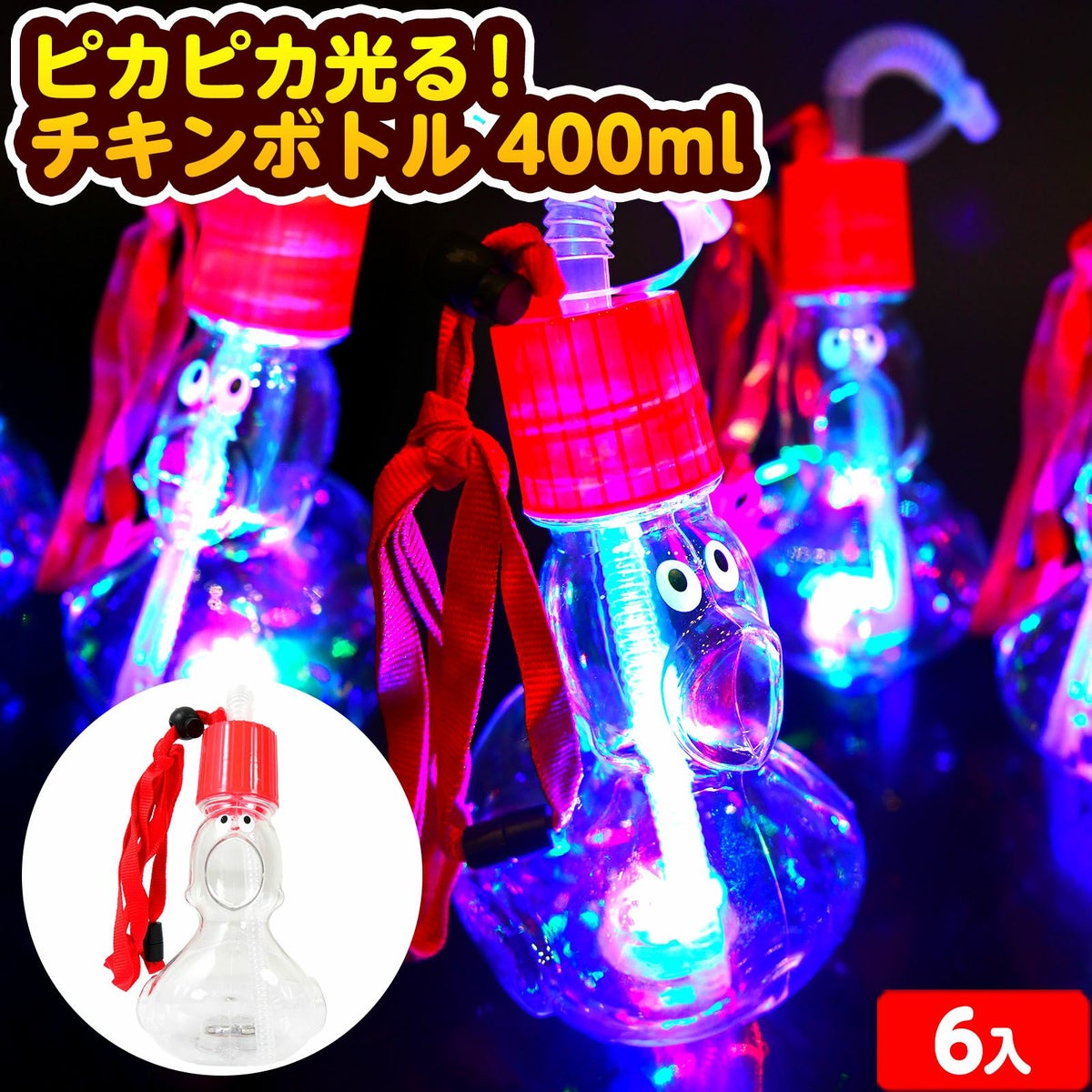 他の画像を見る 1個装あたり約246.7円(約271.3円税込)x6個装入=1480円(1628円税込) ドリンクが映える人気アイテム☆ 光るボトル 光るジュース 光るドリンク 6個セット ピカピカ光る! チキンボトル 400ml 光るおもちゃ 不良返品不可{ ひかるおもちゃ 光るオモチャ 大量 セット 祭り 問屋 屋台 ボトル 光るジュース 鳥 チキン }{ 光るボトル 光る おもちゃ お祭り 縁日 }[25E29][dmo] メーカー希望小売価格 オープン価格 のところ 当店特別価格 ¥ 1,628 税込 カートに入れる お気に入りに登録する