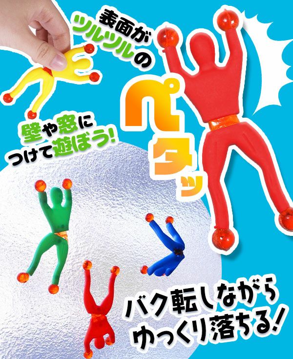 他の画像を見る 1個装あたり23円(約25.3円税込)x48個装入=1104円(1214円税込)壁にペタッとくっついて下降する!おもしろくっつきおもちゃ ペッタペッタマン 48個装入 { 景品玩具 ペタペタ ぺたぺた 動く おもしろい 壁 くっつく }{ 景品 おもちゃ 詰め合わせ お祭り 夏祭り 縁日 問屋 子供 子供会 祭 お子様ランチ 大量 保育園 幼稚園 イベント 配布 }217[25B13][dmo] メーカー希望小売価格 オープン価格 のところ 当店特別価格 ¥ 1,214 税込 カートに入れる お気に入りに登録する
