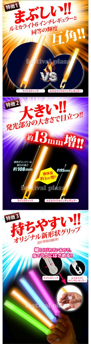 他の画像を見る 約39%OFF!!国内最高品質発光体(ルミカライト ケミカルライト サイリューム) ルミカライトレギュラー コンベンショナルタイプ 6インチ { ルミカライト ケミカルライト サイリューム サイリウム ペンライト }{ 光るおもちゃ パーティー パーティーグッズ ライブ フェス アイドル 応援 結婚式 二次会 ナイトラン }[SKB][24L04][dmo]{即日出荷 配送区分D} メーカー希望小売価格 ¥ 198 のところ 当店特別価格 ¥ 120 税込 カートに入れる お気に入りに登録する