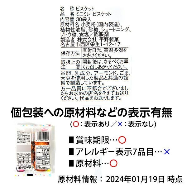 他の画像を見る 単価34円(約36.7円税込)x30個装入=1020円(1102円税込)揚げビスケットのやさしいおいしさ ミニ ミレービスケット 30個装入 { 駄菓子 お菓子 ビスケット クラッカー }{ 駄菓子 お菓子 おかし おやつ 景品 お祭り 縁日 問屋 子供 子供会 自治会 お子様ランチ 詰め合わせ 大量 まとめ買い 保育園 幼稚園 パーティー イベント 配布 }[24A19] メーカー希望小売価格 オープン価格 のところ 当店特別価格 ¥ 1,102 税込 カートに入れる お気に入りに登録する
