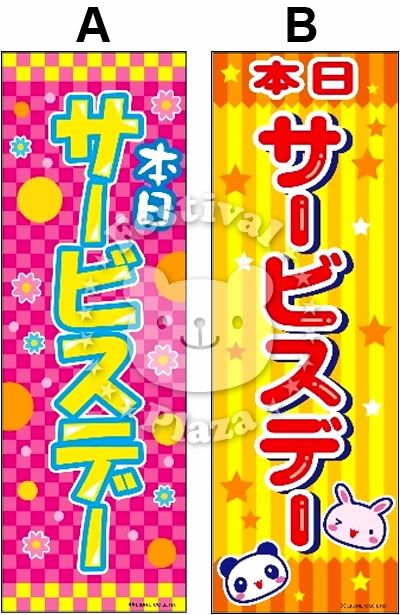 他の画像を見る 「目立ってなんぼですわ」可愛くて 目立つ お手軽価格のぼり のぼり旗 『サービスデー』 のぼり/のぼり旗サイズ:約60cm×180cm { イベント 景品 お祭り くじ引き 縁日 屋台 夏祭り 夜店 露店 夕涼み会 納涼祭 文化祭 学園祭 }[24B06]{即日出荷 配送区分D} メーカー希望小売価格 オープン価格 のところ 当店特別価格 ¥ 1,150 税込 カートに入れる お気に入りに登録する