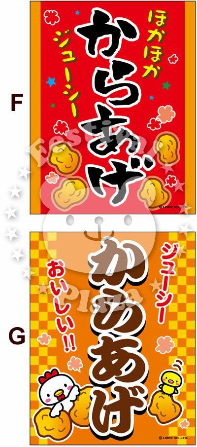 他の画像を見る 「目立ってなんぼですわ」可愛くて 目立つ お手軽価格 吊り下げ旗 『からあげ』 吊り下げ旗 サイズ:約35cm×45cm { つり下げ 幕 }{ 子供会 景品 祭り くじ引き 縁日 屋台 幼稚園 保育園 イベント 文化祭 学園祭 }[24B06]{即日出荷 配送区分D} メーカー希望小売価格 オープン価格 のところ 当店特別価格 ¥ 550 税込 カートに入れる お気に入りに登録する