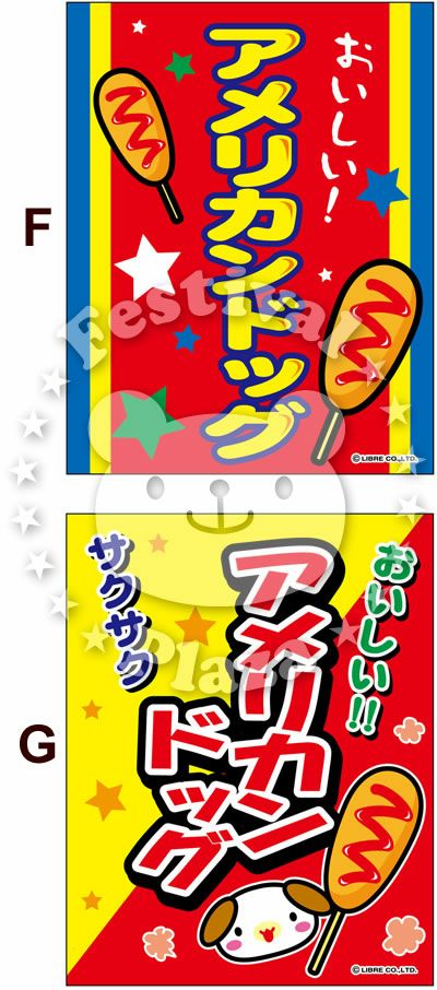 他の画像を見る 「目立ってなんぼですわ」可愛くて 目立つ お手軽価格吊り下げ旗 つり下げ旗 吊下げ旗 『アメリカンドッグ』 吊り下げ旗サイズ:約35cm×45cm { アメリカンドック }{ 子供会 景品 お祭り くじ引き 縁日 屋台 夏祭り 幼稚園 保育園 夜店 露店 夕涼み会 納涼祭 イベント 文化祭 学園祭 自治会 町内会 }[24B06] メーカー希望小売価格 オープン価格 のところ 当店特別価格 ¥ 550 税込 カートに入れる お気に入りに登録する